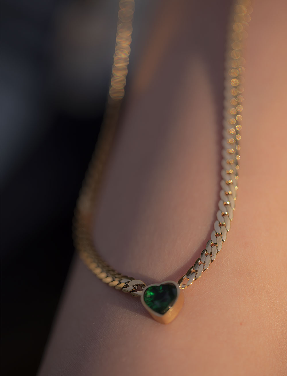 Un pendentif en forme de cœur, symbole d’amour et de passion, suspendu à une chaîne dorée. Ce collier est le bijou parfait pour exprimer vos émotions avec élégance.