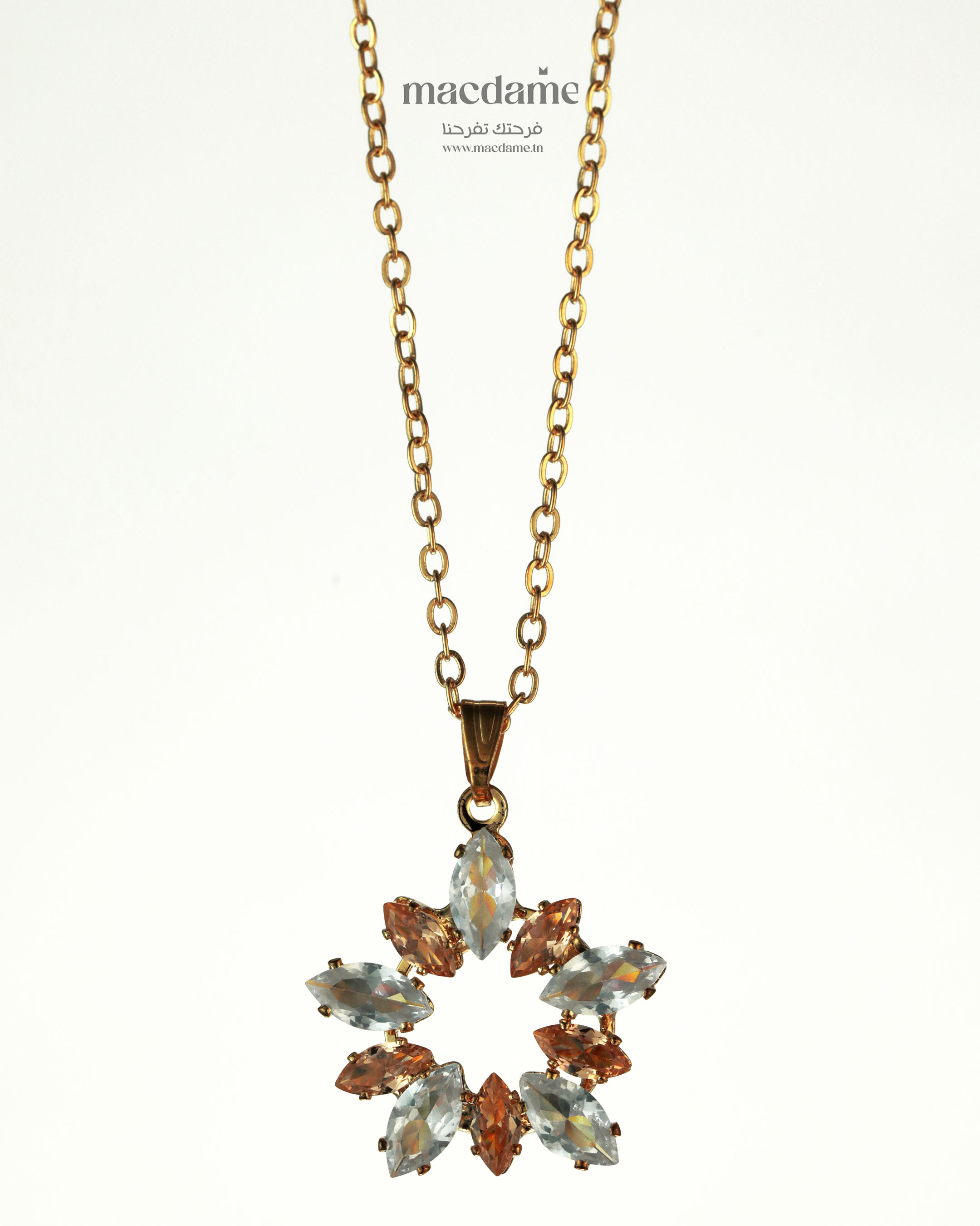 Floraison est une parure envoûtante qui capture l’éclosion d’une fleur précieuse en pleine splendeur. Ce coffret d’exception présente un pendentif et des boucles d’oreilles aux motifs floraux parfaitement symétriques, où s’alternent avec harmonie des cristaux transparents éclatants et des pierres ambrées aux reflets chaleureux. Chaque pétale de cristal, taillé en navette, est méticuleusement positionné pour créer une couronne lumineuse qui rayonne d’élégance sur fond noir. Suspendus à une délicate chaîne dorée, ces bijoux évoquent la fraîcheur et la grâce d’un jardin éternel. La brillance des cristaux clairs dialogue avec la chaleur des pierres champagne pour créer un jeu de lumière sophistiqué qui s’adapte à chaque tenue, des plus décontractées aux plus formelles. Floraison est une célébration de la féminité et de la nature, transformée en accessoire intemporel par le savoir-faire de Macdame.